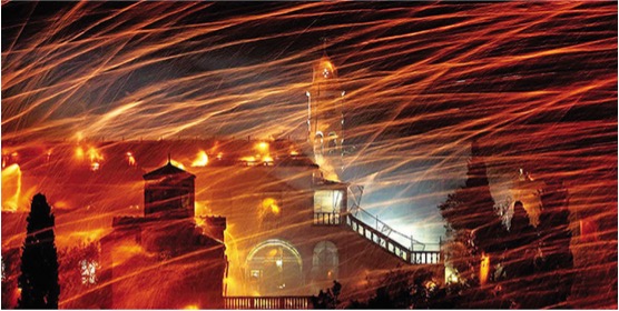 Η Καλαμάτα, η πρωτεύουσα της Μεσσηνίας, είναι παγκοσμίως γνωστή για το ελαιόλαδό της, αλλά κατά τη διάρκεια του Πάσχα, η πόλη στήνει τον δικό της ρουκετοπόλεμο, που τοπικά ονομάζεται “σαϊτοπόλεμος”. Στην Καλαμάτα, αυτός ο “χορός της φωτιάς” λαμβάνει χώρα την Κυριακή του Πάσχα.
